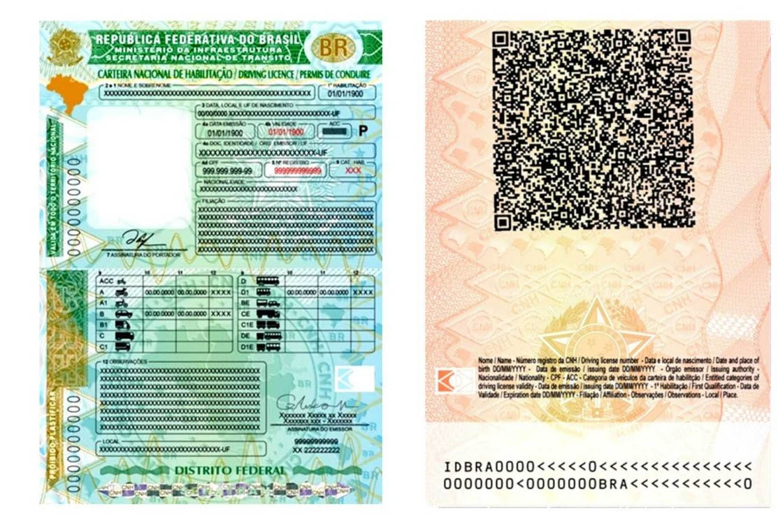 O documento vai apontar se a CNH é temporária, sendo identificada com a letra P no canto superior direito, ou se é definitiva, com a letra D. A nova carteira de motorista brasileira também se aproxima do padrão internacional, com identificação impressa em português, inglês e francês.