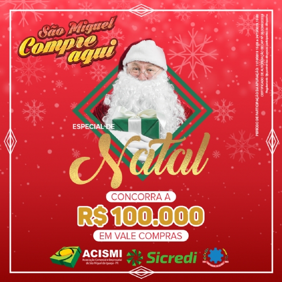 Faça as suas compras de final de ano nas empresas identificadas com adesivo da Campanha São Miguel Compre Aqui e concorra a: