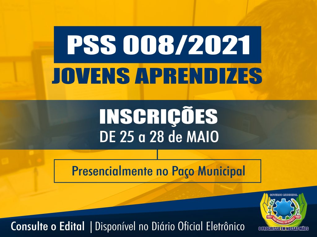 O Governo Municipal de São Miguel do Iguaçu inicia nesta terça-feira, dia 25 de maio, as inscrições para o Processo Seletivo Simplificado (PSS) nº 008/2021, visando à contratação de Jovens Aprendizes, para atuarem nas unidades administrativas do município.