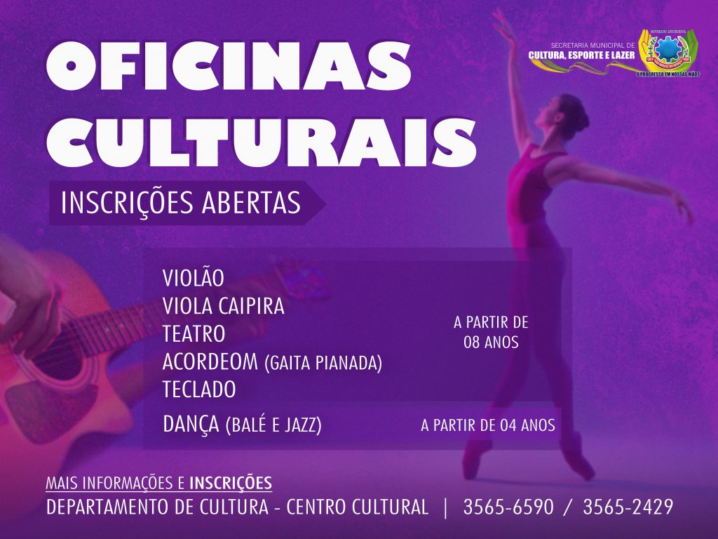 A secretaria municipal de Cultura, Esporte e Lazer de São Miguel do Iguaçu, através do departamento de Cultura, está com inscrições abertas para interessados em participar das oficinais culturais que serão disponibilizadas a partir deste mês de agosto.