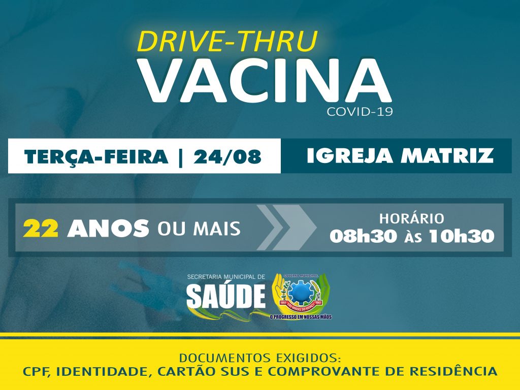 A aplicação das doses vai ser realizada no horário das 08h30 às 10h30, na Igreja Matriz, seguindo o modelo drive thru, com a pessoa sendo vacinada dentro do carro.