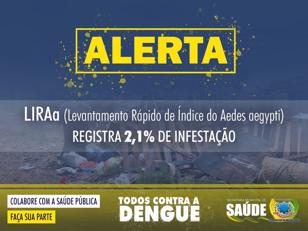 Comparado ao LIRAa anterior, que foi realizado no mês de junho e apontou alto risco de epidemia de dengue, houve redução nos índices, porém, a população precisa continuar tomando todos os cuidados para evitar uma epidemia de dengue, eliminando possíveis focos de criadouros do mosquito Aedes aegypti – transmissor da dengue, zika, chikungunya e outras doenças, não deixando água parada em nenhum recipiente e mantendo limpos lotes e ambientes internos.