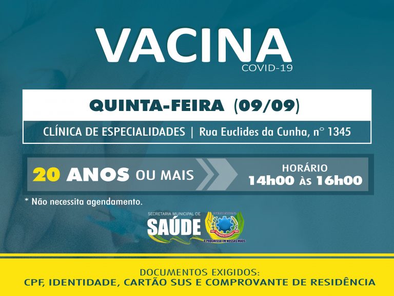 Para receber a dose é preciso ter 20 anos completos ou mais e apresentar RG, CPF, cartão do SUS e comprovante de residência. Não é necessário agendar a vacina.