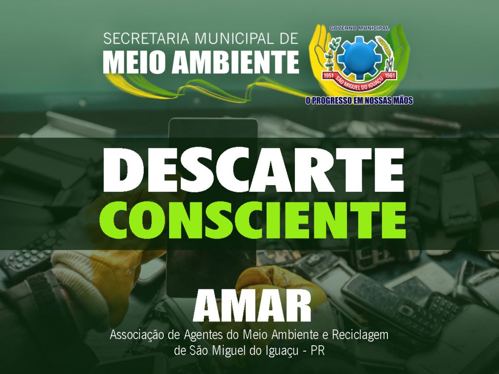 O Governo Municipal de São Miguel do Iguaçu, por meio da secretaria de Meio Ambiente, realiza nesta quarta-feira, 03 de novembro, em parceria com a Associação de Agentes do Meio Ambiente e Reciclagem de São Miguel do Iguaçu (AMAR), mais uma etapa da campanha ‘Descarte Consciente’, que está realizando a coleta de materiais eletrônicos.