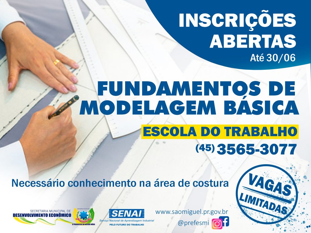 O Governo Municipal de São Miguel do Iguaçu, por meio da secretaria de Desenvolvimento Econômico, e o Serviço Nacional de Aprendizagem Industrial (Senai) está com inscrições abertas para o curso ‘Fundamentos de Modelagem Básica’, que vai iniciar no próximo dia 04 de julho e terá 40 horas de duração.
