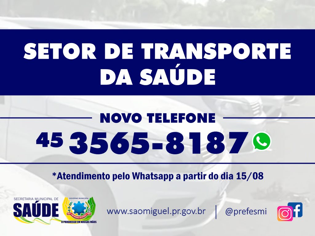 O Governo Municipal de São Miguel do Iguaçu, por meio da secretaria de Saúde, comunica que o setor de Transporte da Saúde está com um novo número de telefone para contato.