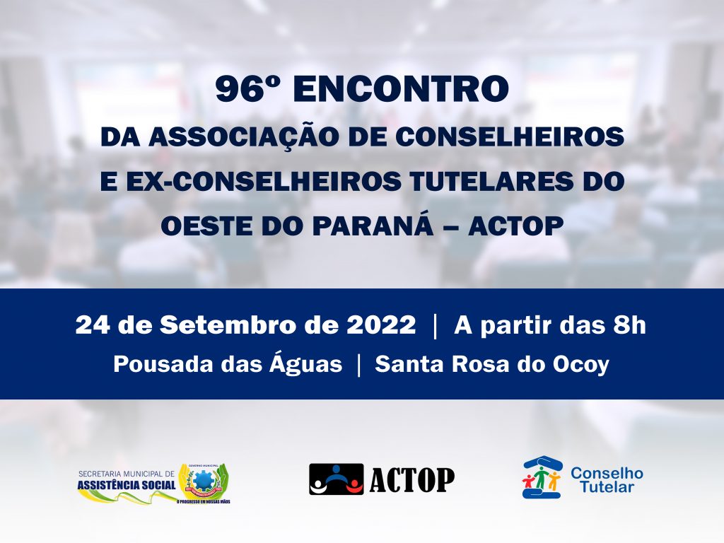 O município de São Miguel do Iguaçu vai sediar no próximo dia 24 de setembro o 96º encontro da Associação de Conselheiros e Ex-conselheiros Tutelares do Oeste do Paraná – ACTOP, que será realizado na Pousada das Águas, localizada no distrito de Santa Rosa do Ocoí.