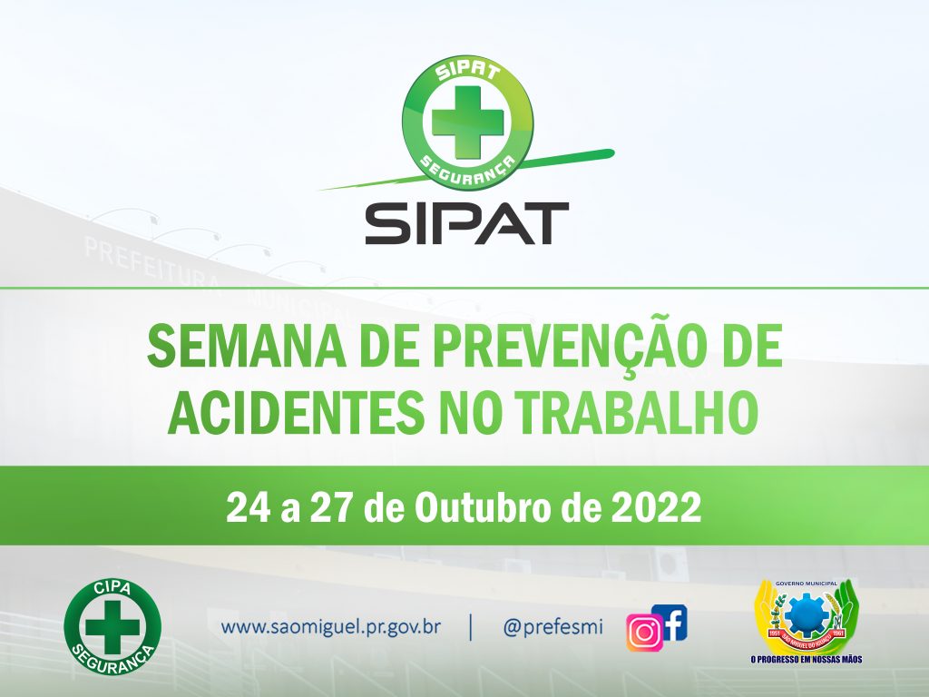 O Governo Municipal de São Miguel do Iguaçu, por meio da Comissão Interna de Prevenção de Acidentes (CIPA), vai realizar de 24 a 27 de novembro a semana SIPAT 2022 – Semana de Prevenção de Acidentes no Trabalho.