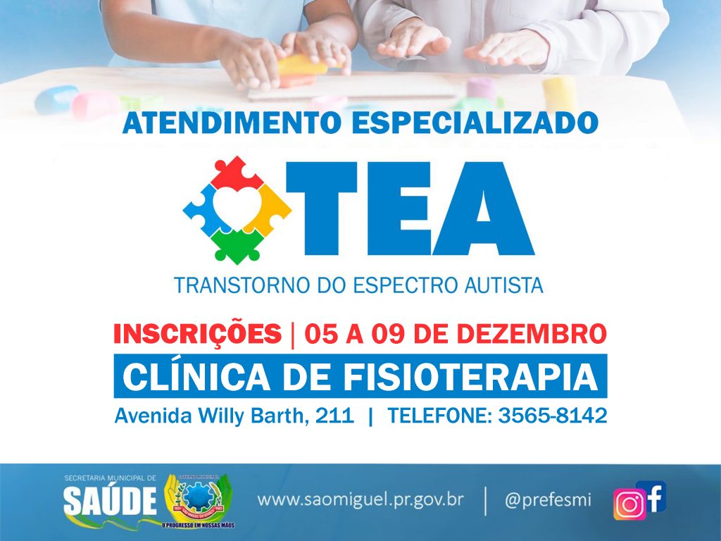 O Governo Municipal de São Miguel do Iguaçu, por intermédio da secretaria de Saúde, está convocando pais ou responsáveis de munícipes com Transtorno do Espectro Autista (TEA) para fazer a inscrição ao atendimento a esses pacientes nas dependências da Clínica de Fisioterapia.