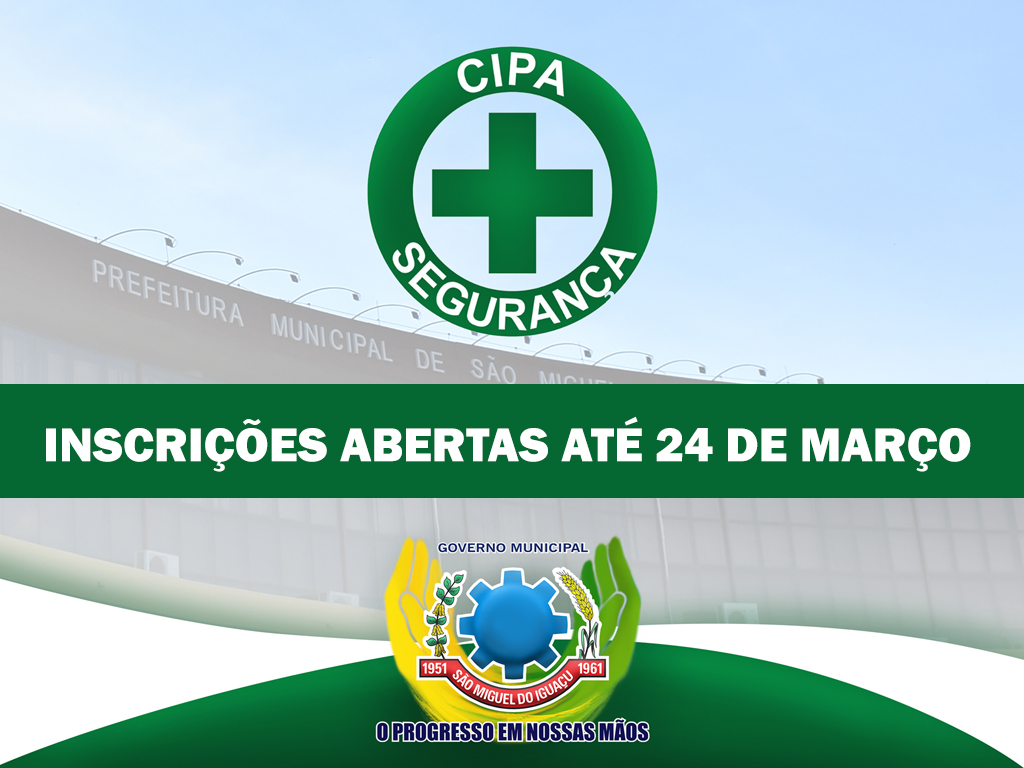 O Governo Municipal de São Miguel do Iguaçu, por intermédio da Comissão Interna de Prevenção de Acidentes (CIPA), informa que as inscrições de candidatos para compor a mesma foram prorrogadas até o dia 24 de março.