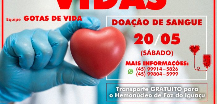 A Equipe Multiprofissional de São Miguel do Iguaçu, vinculada à secretaria de Saúde, está convidando a comunidade para um dia de doação de sangue no próximo dia 20 de maio, um sábado. Os interessados devem entrar em contato pelo WhattsApp (45) 9.9914-5826 e confirmar o interesse para que seja organizado o transporte gratuito até o Hemonúcleo de Foz do Iguaçu.