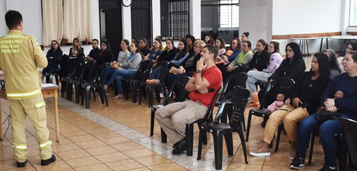Os profissionais que participam do curso passam pela teoria e prática. “É muito importante ter conhecimento sobre os primeiros socorros para saber o que fazer num primeiro momento”, disse a professora do CMEI Olímpia Pizzolo, Adriana de Lima Ghellere.