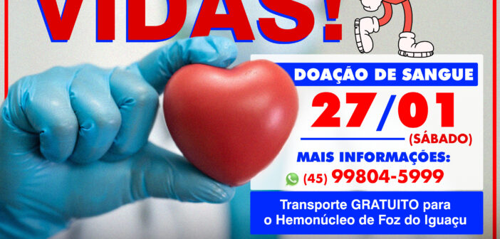 A Equipe Multiprofissional de São Miguel do Iguaçu, vinculada à Secretaria de Saúde do Governo Municipal, está convidando a comunidade para mais um dia de doação de sangue no próximo dia 27 de janeiro. Os interessados devem entrar em contato pelo WhattsApp (45) 9.9804-5999 e confirmar o interesse para que seja organizado o transporte gratuito até o Hemonúcleo de Foz do Iguaçu.