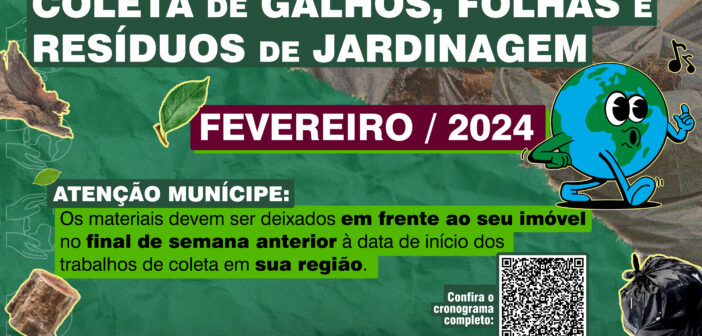O cronograma completo da coleta de galhos, folhas e resíduos provenientes de jardinagem para o ano de 2024 está disponível no site da prefeitura e pode ser acessado CLICANDO AQUI.