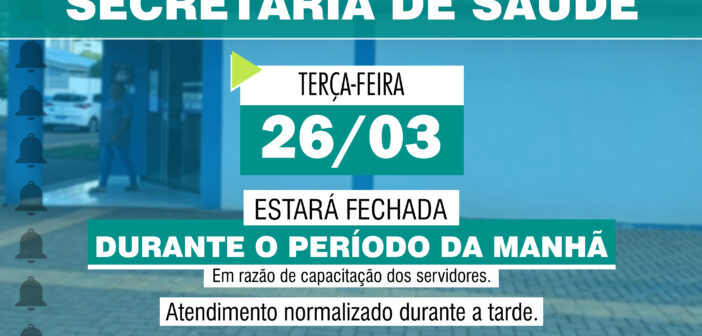 Secretaria de Saúde estará fechada na manhã desta terça-feira (26)